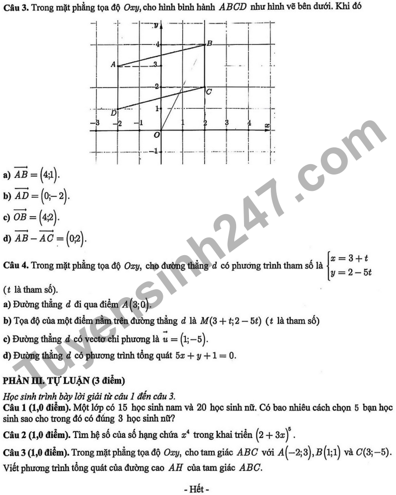 >> Học trực tuyến Lớp 10 cùng thầy cô giáo giỏi tại Tuyensinh247.com, (Xem ngay) Cam kết giúp học sinh học tốt, bứt phá điểm 9,10 chỉ sau 3 tháng, làm quen kiến thức, định hướng luyện thi TN THPT, ĐGNL, ĐGTD ngay từ lớp 10
