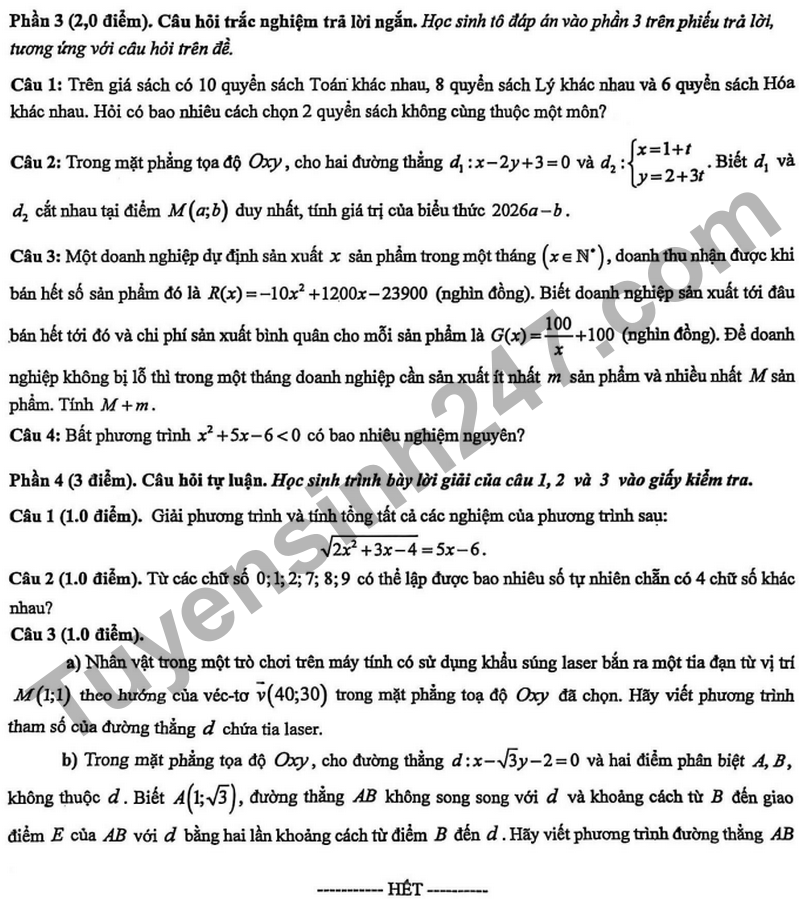 Cập nhật lúc: 08:25 27-03-2026 Mục tin: Đề thi giữa học kì 2 lớp 10