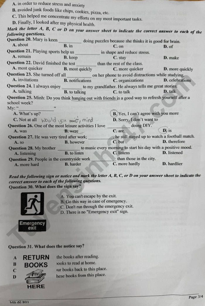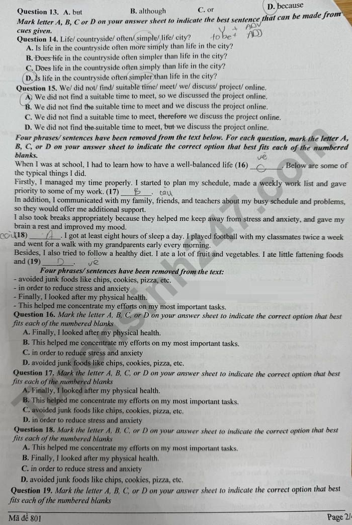 Lưu ý: Lời giải trong đề là bài làm của học sinh, có thể không chính xác
