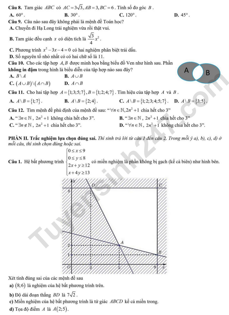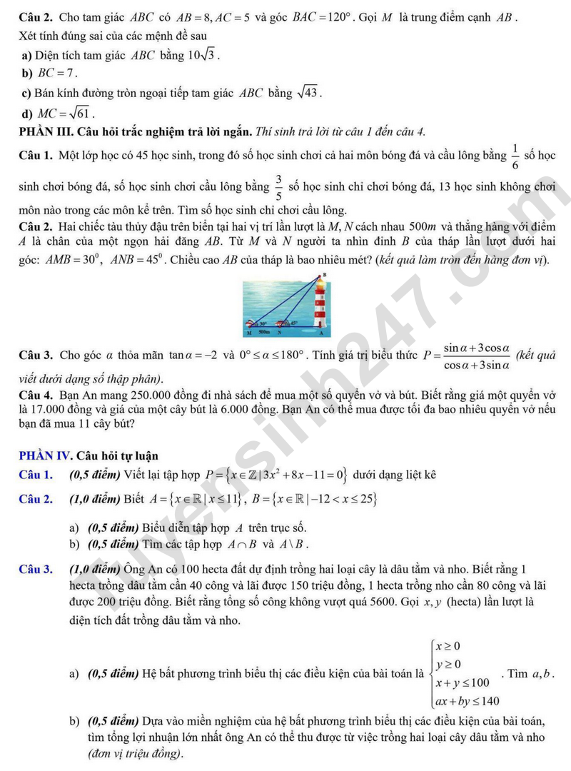 >> Học trực tuyến Lớp 10 cùng thầy cô giáo giỏi tại Tuyensinh247.com, (Xem ngay) Cam kết giúp học sinh học tốt, bứt phá điểm 9,10 chỉ sau 3 tháng, làm quen kiến thức, định hướng luyện thi TN THPT, ĐGNL, ĐGTD ngay từ lớp 10