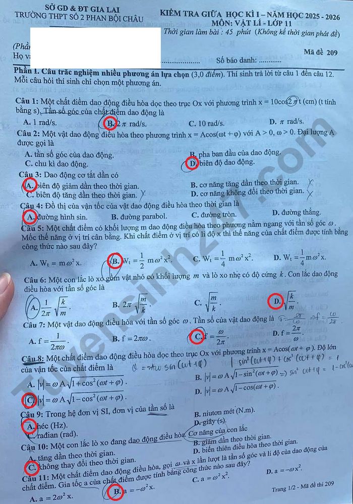 Đề thi giữa kì 1 lớp 11 môn Lý - THPT số 2 Phan Bội Châu 2025