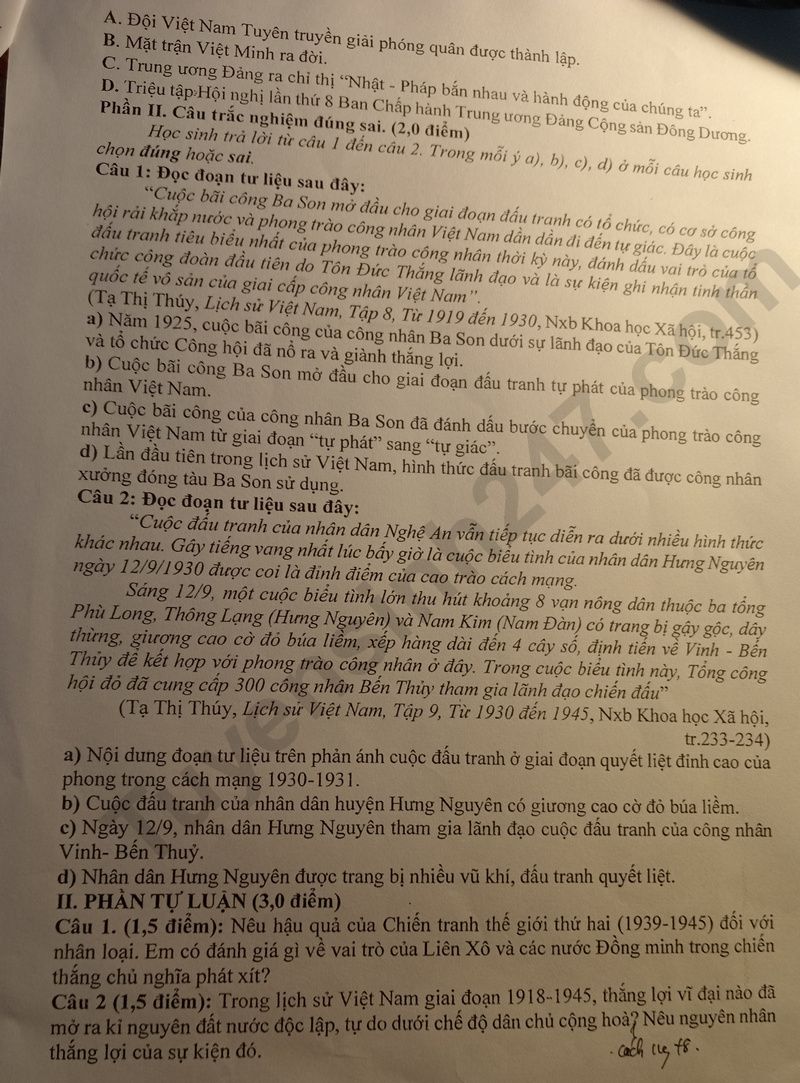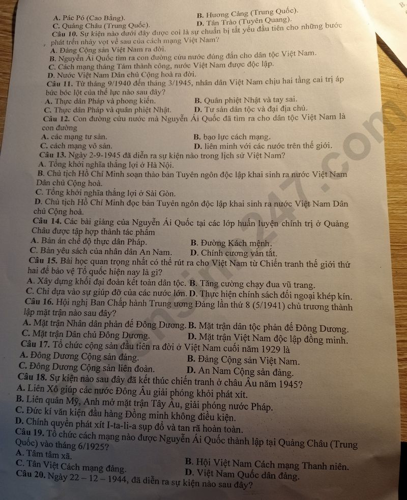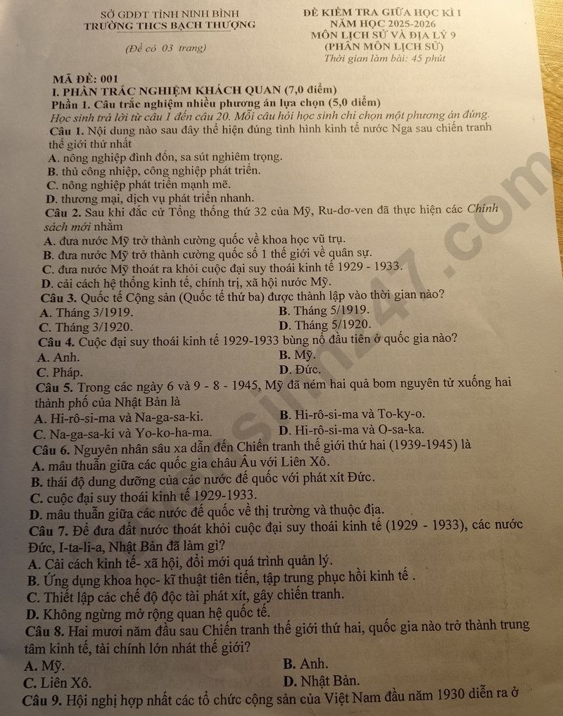 Đề thi giữa kì 1 lớp 9 môn Lịch sử và Địa Lý 2025 - THCS Bạch Thượng