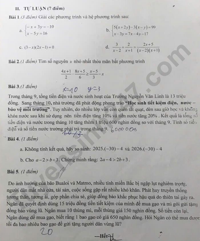 Lưu ý: Đáp án trong đề là bài làm của học sinh, có thể không chính xác