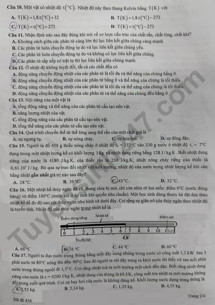 Câu 12. Ở nhiệt độ không tuyệt đối, tất cả các chất đều có