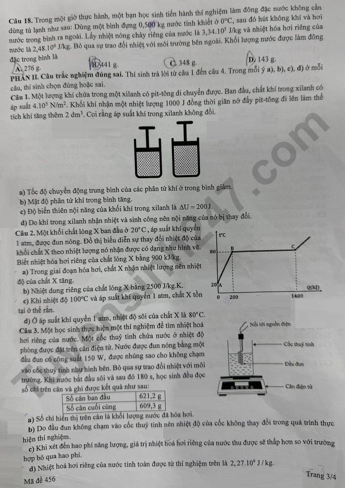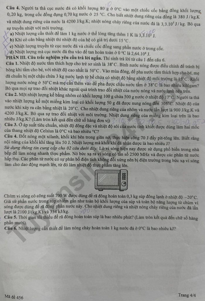 Lưu ý: Đáp án trong đề là bài làm của học sinh, có thể không chính xác