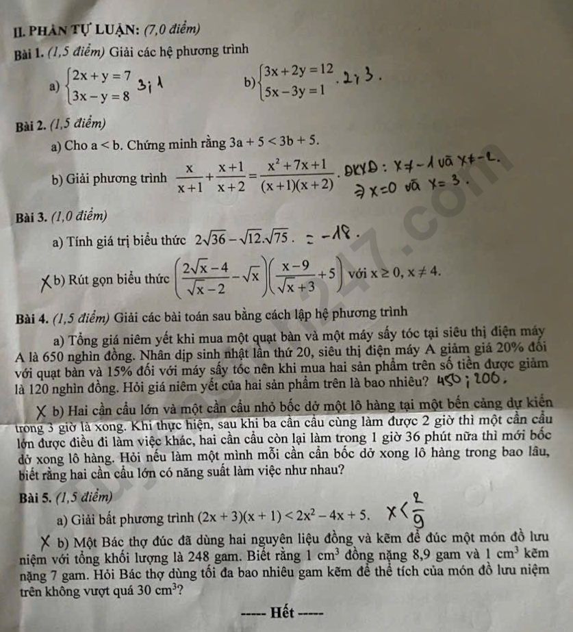 Lưu ý: Đáp án khoanh trong đề thi là của học sinh, không chính xác.