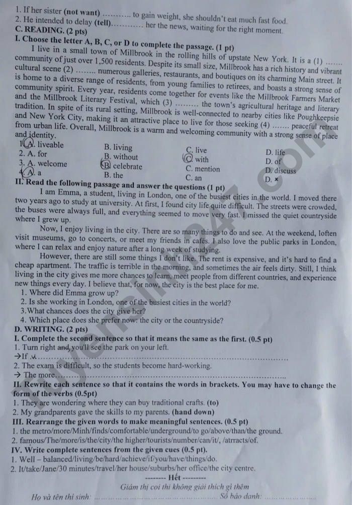 Lưu ý: Đáp án trong đề là bài làm của học sinh, có thể không chính xác