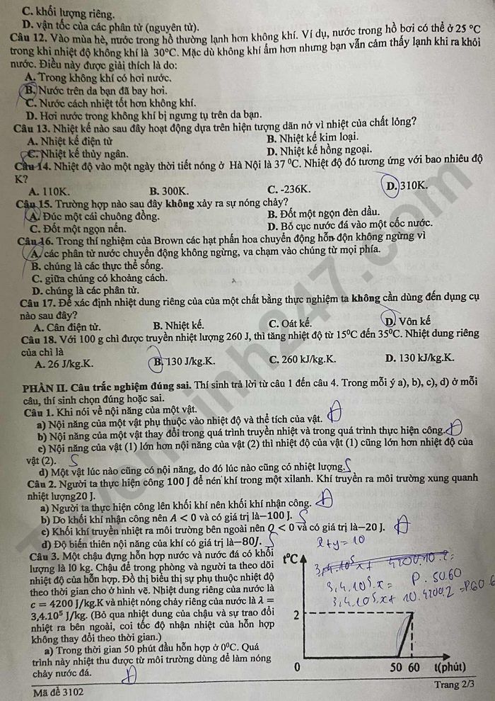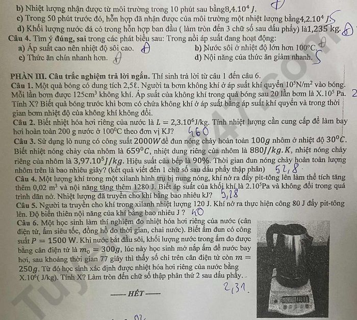Câu 2. Biết nhiệt hóa hơi riêng của nước là L = 2,3.10 J/kg. Tính nhiệt lượng cần cung cấp để làm bay hơi hoàn toàn 200 g nước ở 100C theo đơn vị KJ?