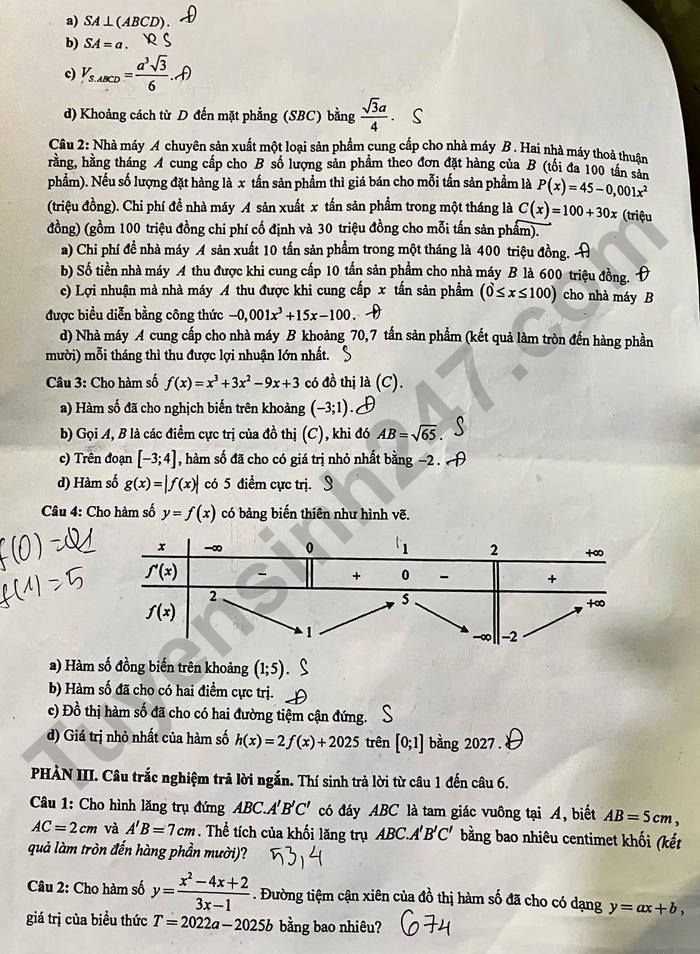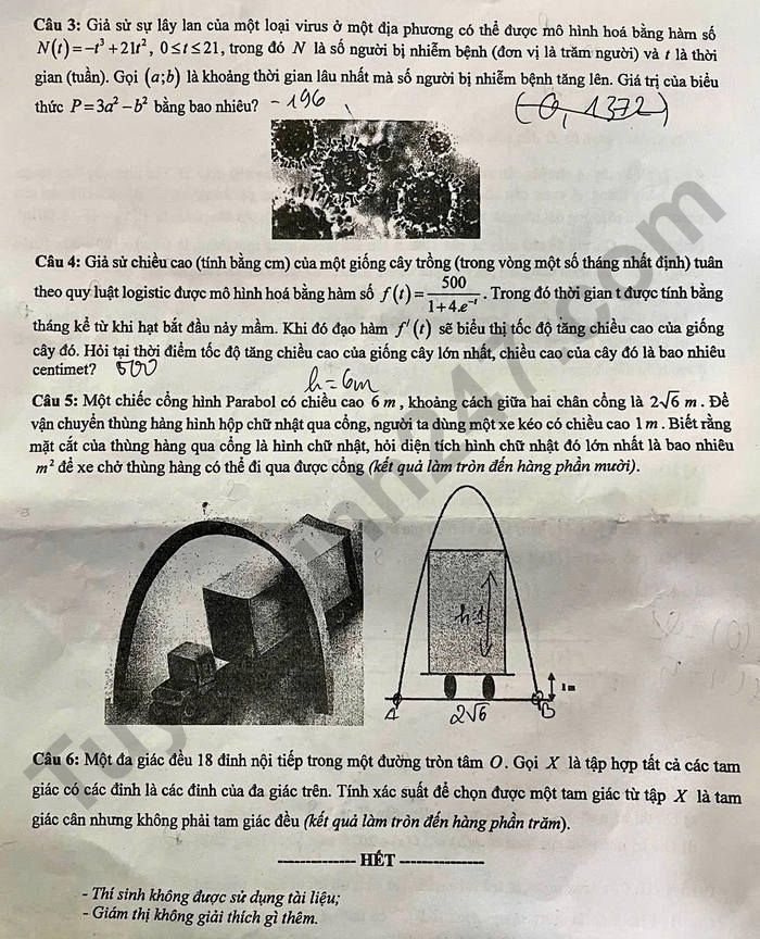 Lưu ý: Lời giải trong đề là bài làm của học sinh, có thể không chính xác