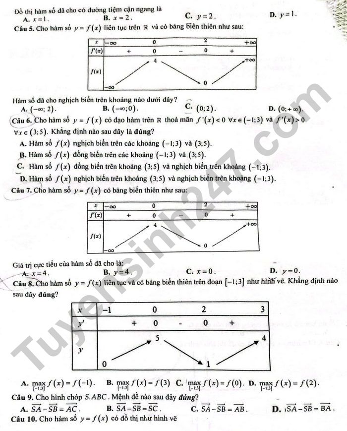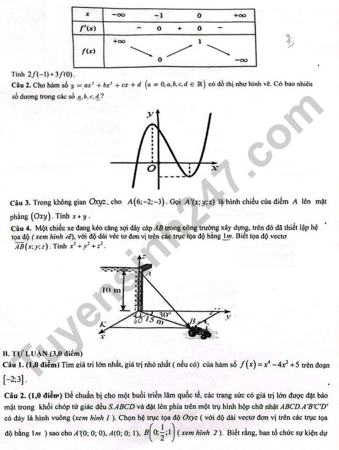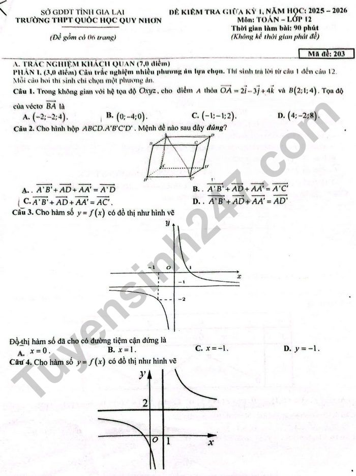 Đề thi giữa kì 1 Toán lớp 12 THPT Quốc học Quy Nhơn 2025