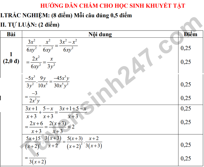 Đáp án Đề thi giữa kỳ 2 Toán 8 năm 2025 – 2026 trường THCS Quế Thuận