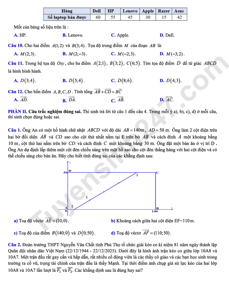 >> Học trực tuyến Lớp 10 cùng thầy cô giáo giỏi tại Tuyensinh247.com, (Xem ngay) Cam kết giúp học sinh học tốt, bứt phá điểm 9,10 chỉ sau 3 tháng, làm quen kiến thức, định hướng luyện thi TN THPT, ĐGNL, ĐGTD ngay từ lớp 10