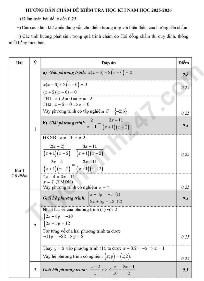 Đáp án đề thi HK1 lớp 9 môn Toán 2025 - Phường Giảng Võ
