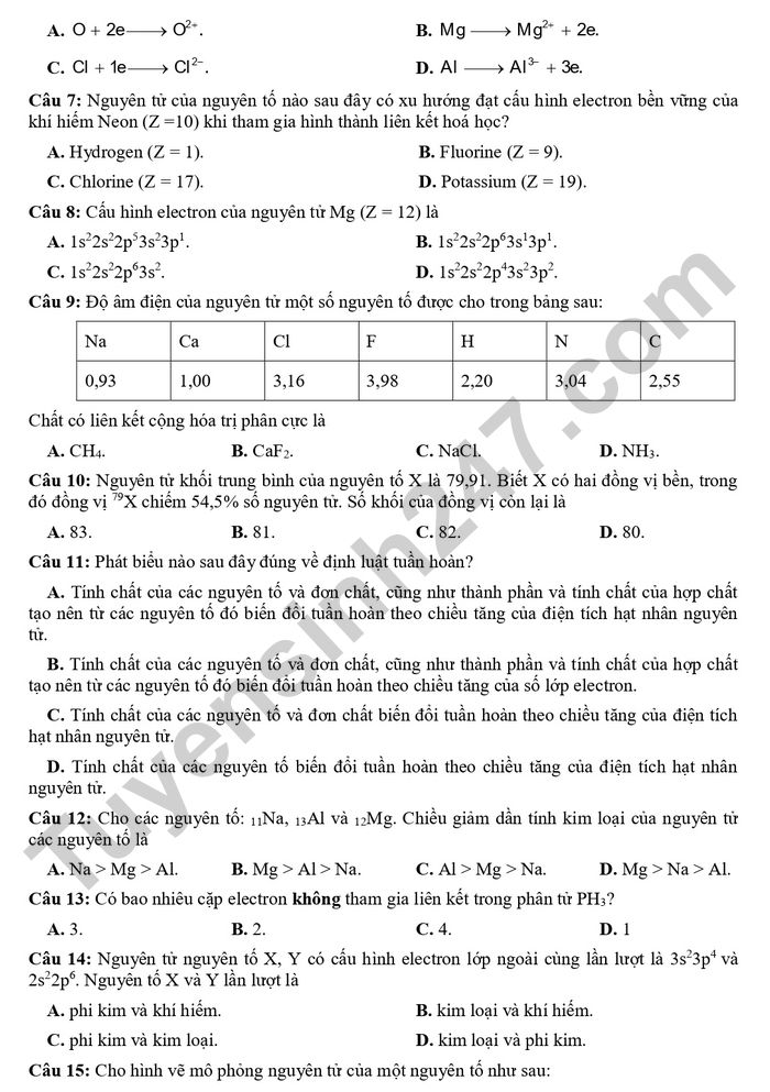 a. Viết cấu hình electron nguyên tử của nguyên tố chlorine.