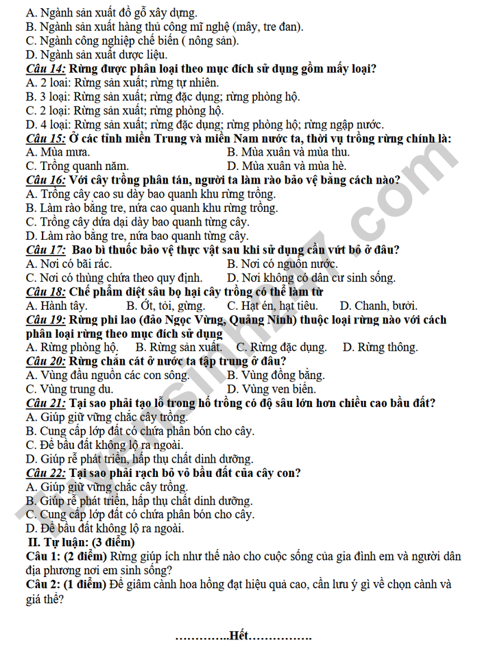 Câu 16: Với cây trồng phân tán, người ta làm rào bảo vệ bằng cách nào?