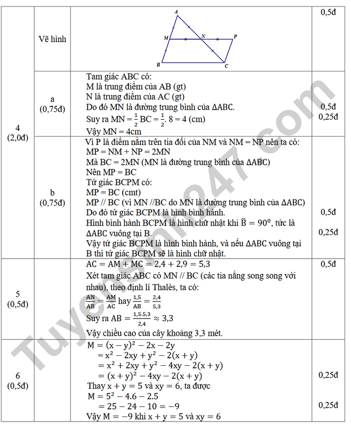 Tam giác ABC có M, N lần lượt là trung điểm của AB và AC. Biết BC = 8cm.