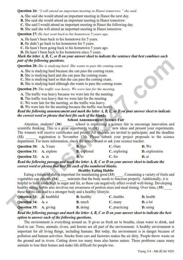 Read the following announcement and mark the letter A, B, C, or D on your answer sheet to indicate the correct word or phrase that best fits each of the blanks.