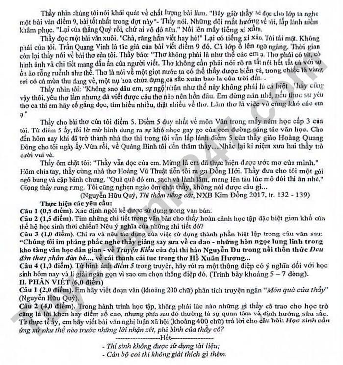 Câu 1 (2,0 điểm). Em hãy viết đoạn văn (khoảng 200 chữ) phân tích truyện ngắn "Món quà của thầy" (Nguyễn Hữu Quý).