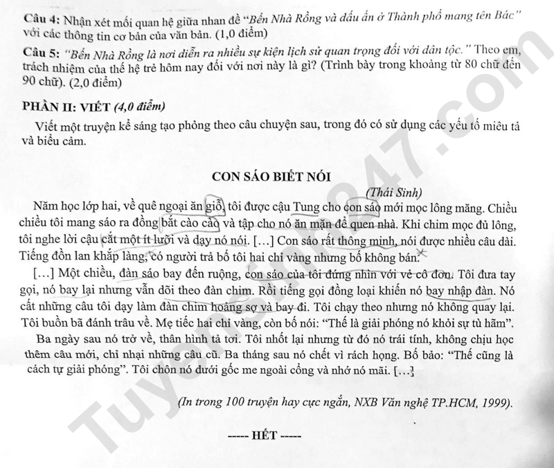 Câu 1: Theo văn bản, vào ngày 5.6.1911, ai là người đã rời Bến Nhà Rồng để ra đi tìm đường cứu nước? (1,0 điểm)