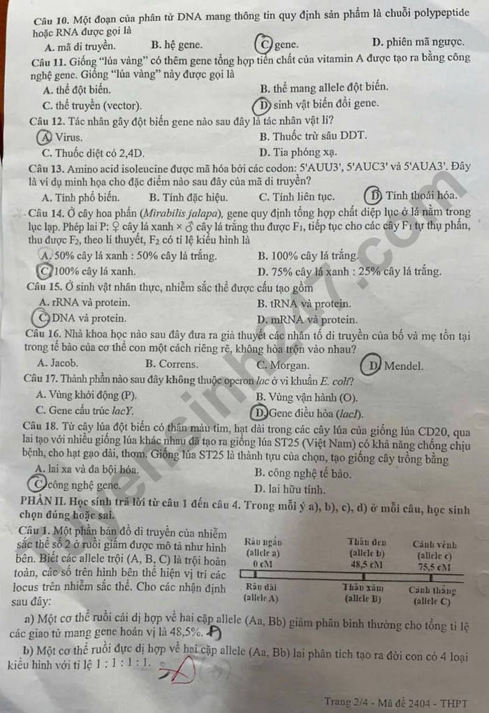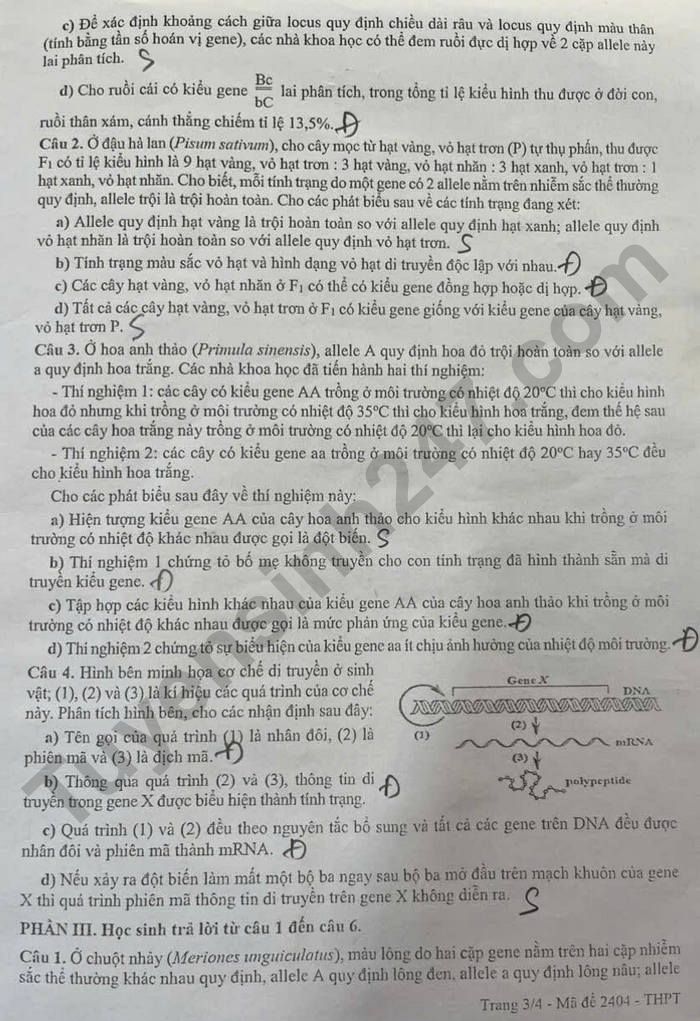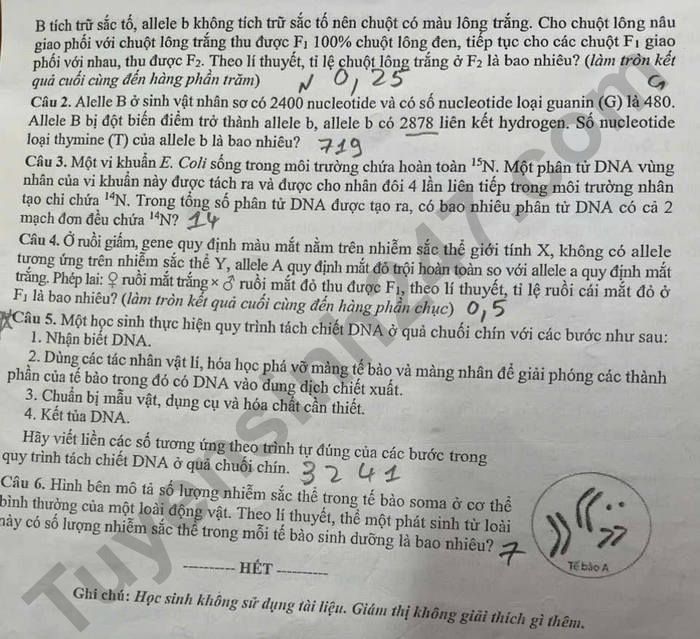 Lưu ý: Đáp án trong đề là bài làm của học sinh, có thể không chính xác