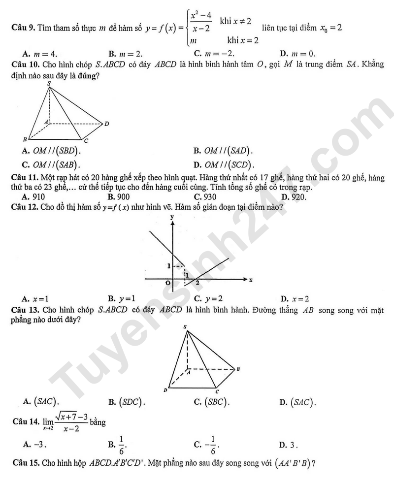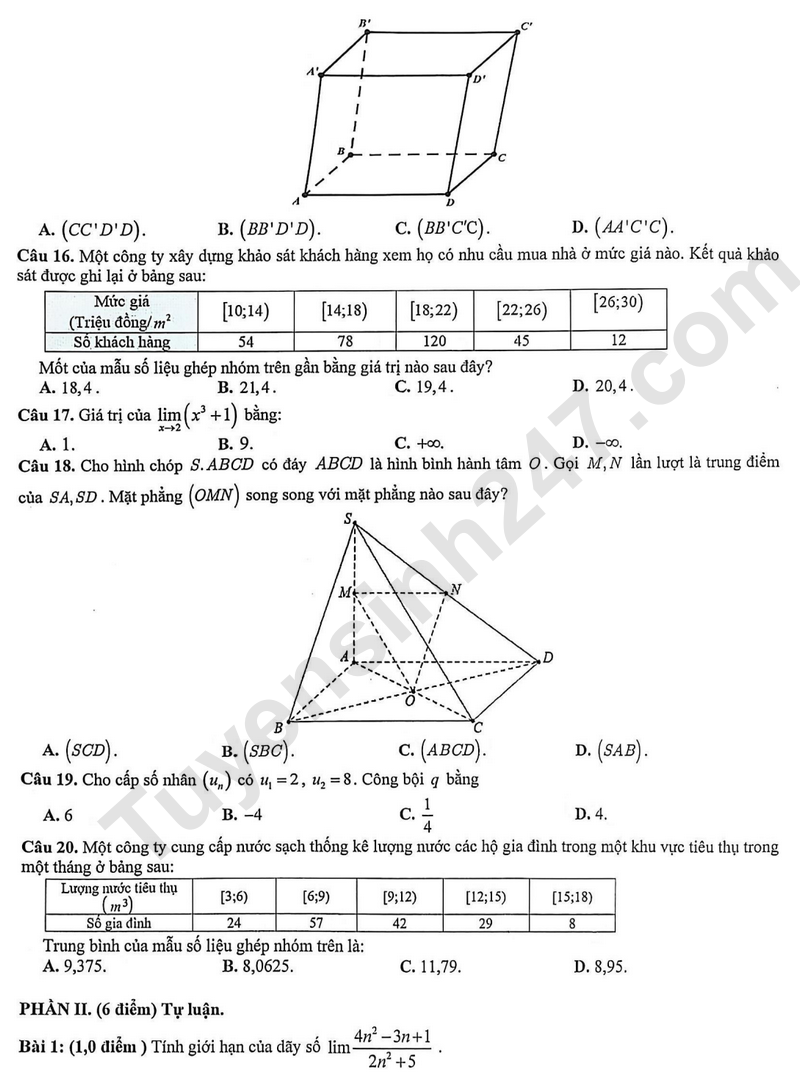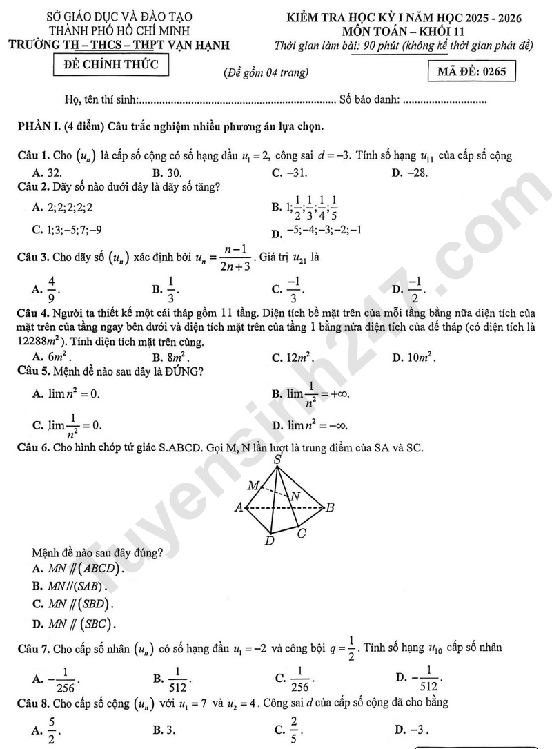 Đề thi học kì 1 môn Toán lớp 11 năm 2025 - TH, THCS và THPT Vạn Hạnh