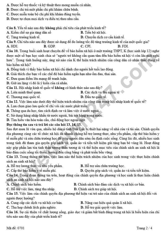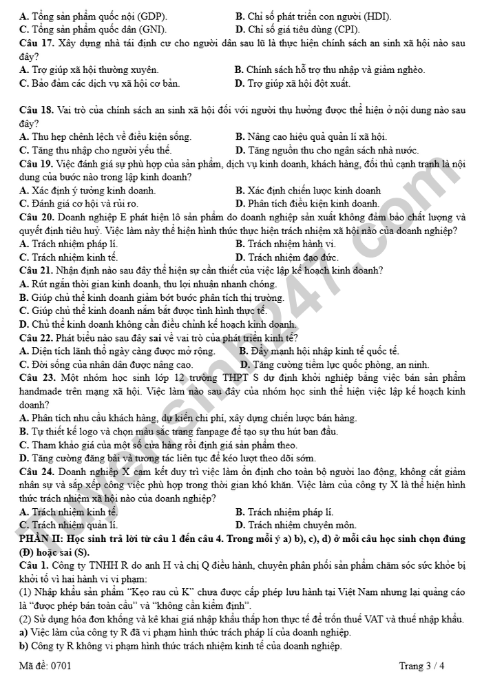 Đề thi học kì 1 năm 2025 Sở GD Bắc Ninh - môn GDKT&PL 12