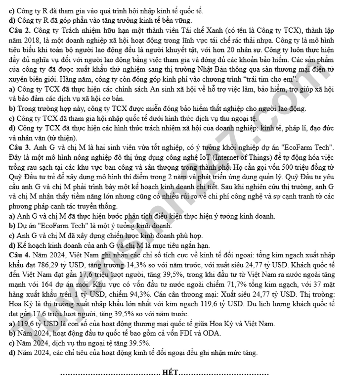 Câu 23. Một nhóm học sinh lớp 12 trường THPT S dự định khởi nghiệp bằng việc bán sản phẩm handmade trên mạng xã hội. Việc làm nào sau đây của nhóm học sinh thể hiện việc lập kế hoạch kinh doanh?