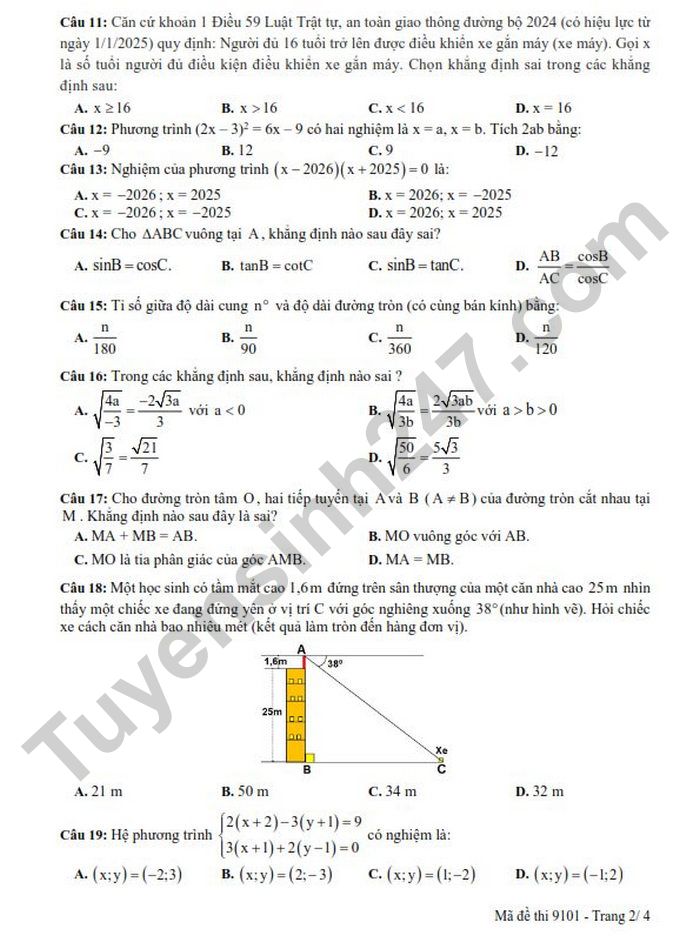 Câu 11: Căn cứ khoản 1 Điều 59 Luật Trật tự, an toàn giao thông đường bộ 2024 (có hiệu lực từ ngày 1/1/2025) quy định: Người đủ 16 tuổi trở lên được điều khiển xe gắn máy (xe máy). Gọi x là số tuổi người đủ điều kiện điều khiển xe gắn máy. Chọn khẳng định sai trong các khẳng định sau: