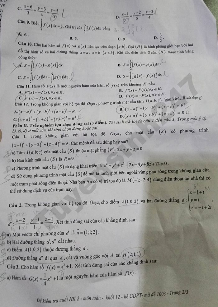 Lưu ý: Đáp án trong đề là bài làm của học sinh, có thể không chính xác