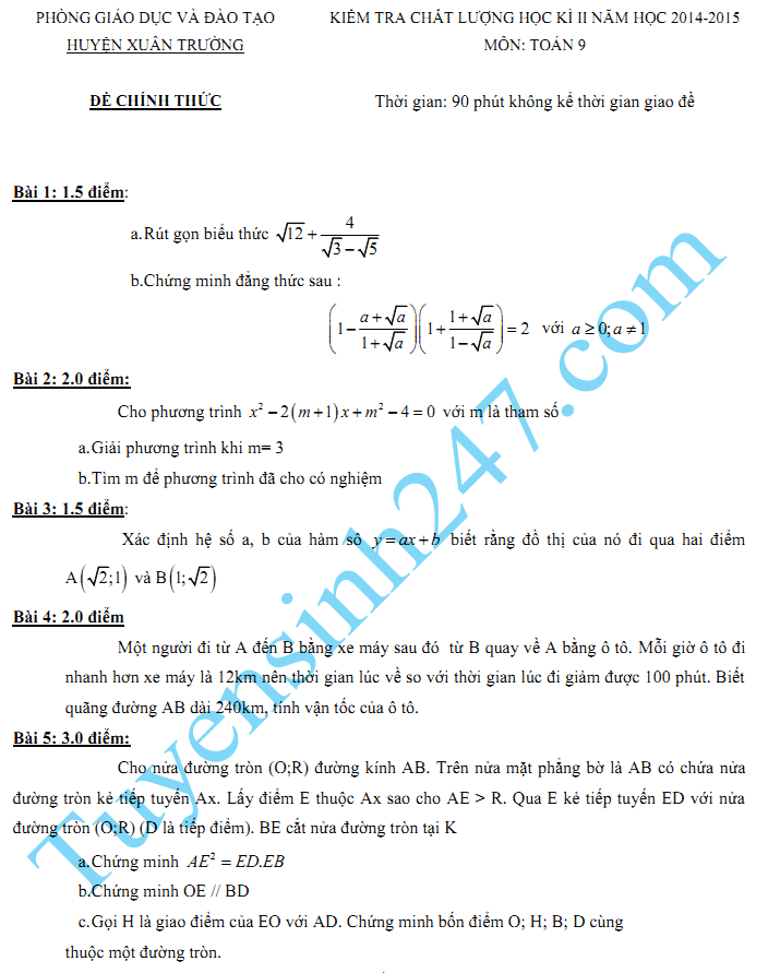Cập nhật lúc: 17:35 26-01-2016 Mục tin: Đề thi học kì 2 lớp 9