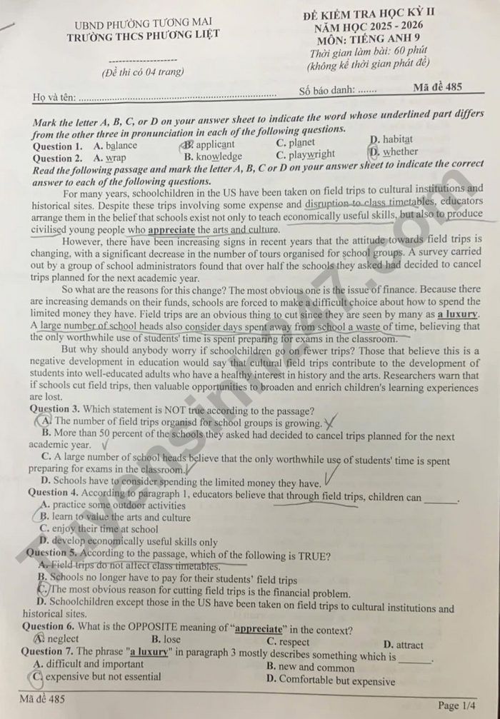 Cập nhật lúc: 09:54 08-04-2026 Mục tin: Đề thi học kì 2 lớp 9