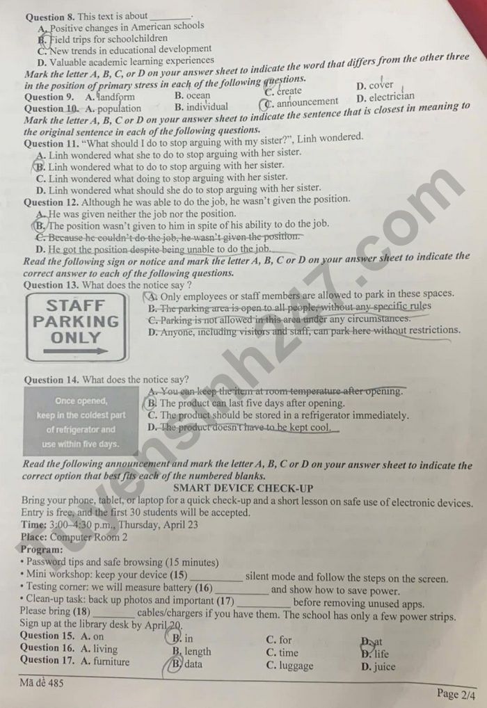 Read the following sign or notice and mark the letter A, B, C or D on your answer sheet to indicate the correct answer to each of the following questions.