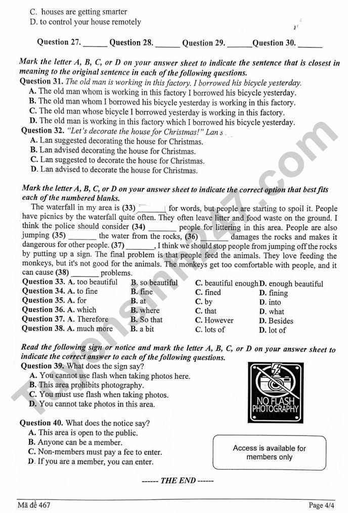 Question 32. "Let's decorate the house for Christmas!" Lan s.