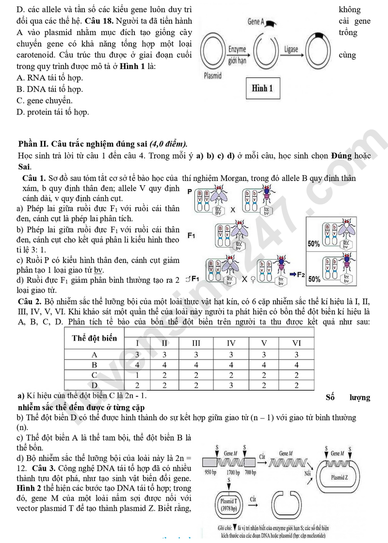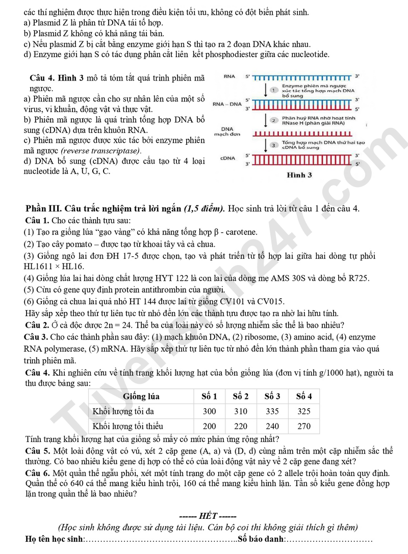 Câu 7. Đặc điểm nào dưới đây không đúng khi nói về quần thể tự thụ phấn?