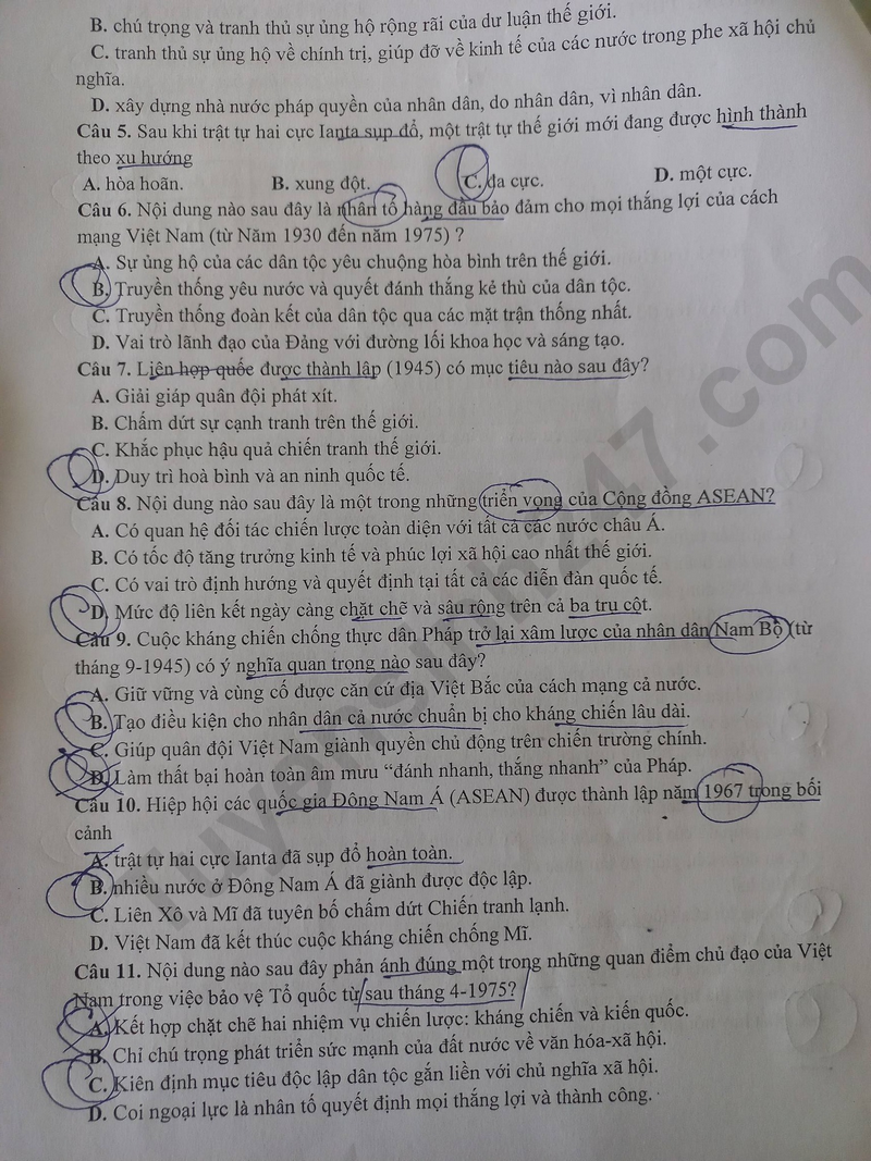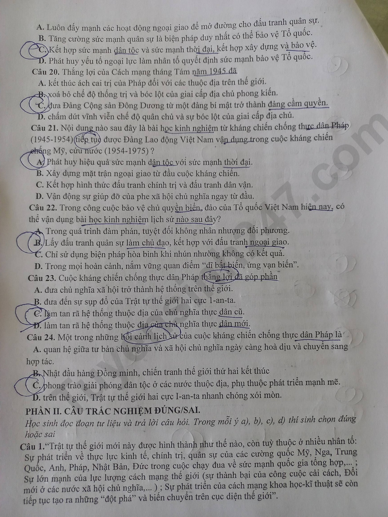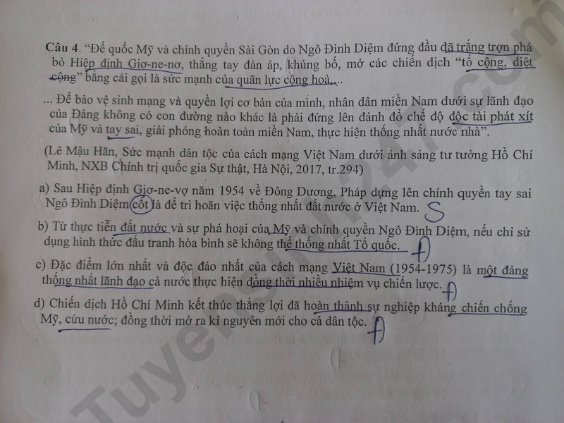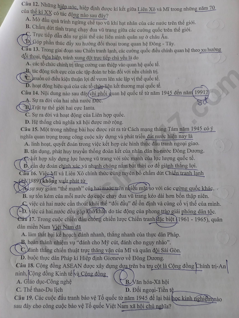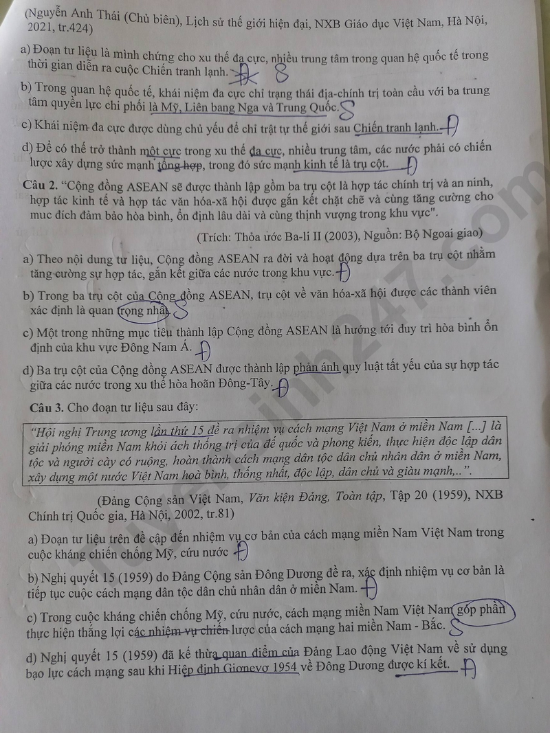 Lưu ý: Đáp án trong đề thi là của học sinh, có thể không chính xác