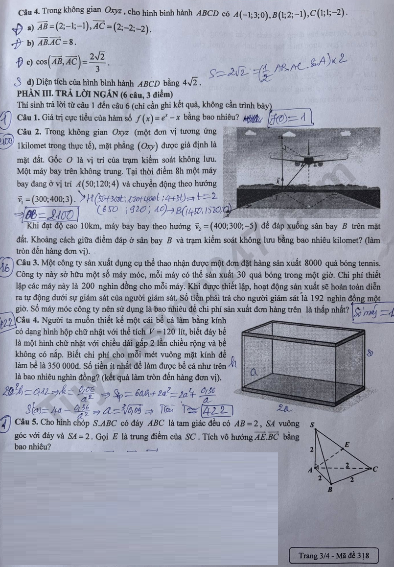 Lưu ý: Đáp án khoanh trong đề là của học sinh, có thể không chính xác.
