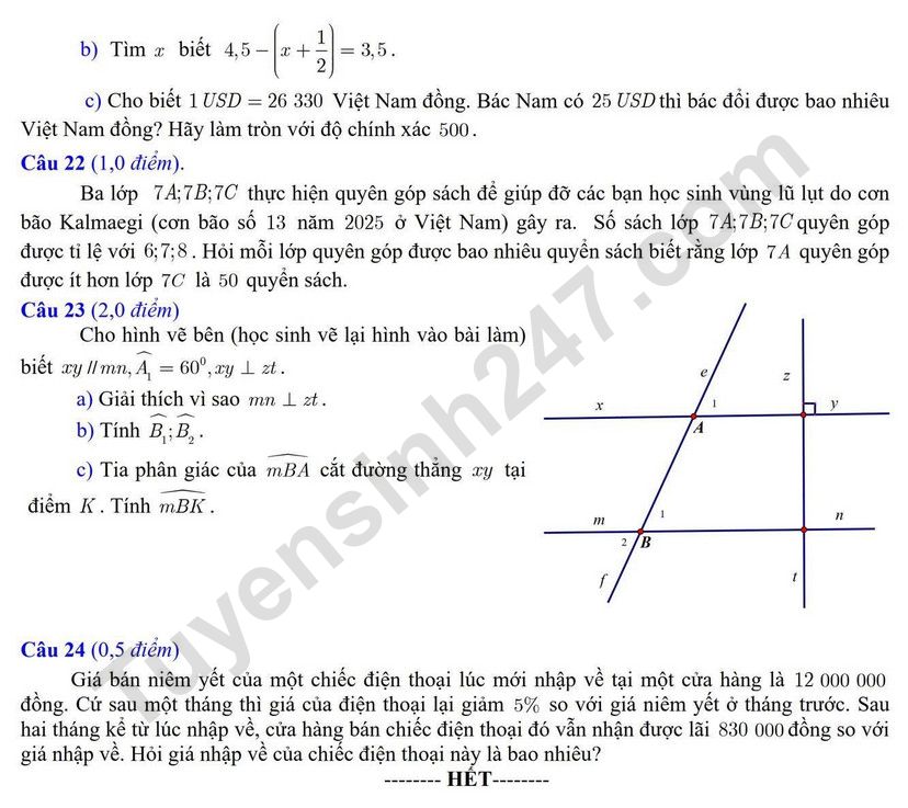 Cập nhật lúc: 09:25 31-12-2025 Mục tin: Đề thi học kì 1 lớp 7