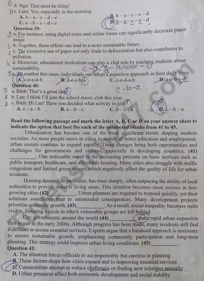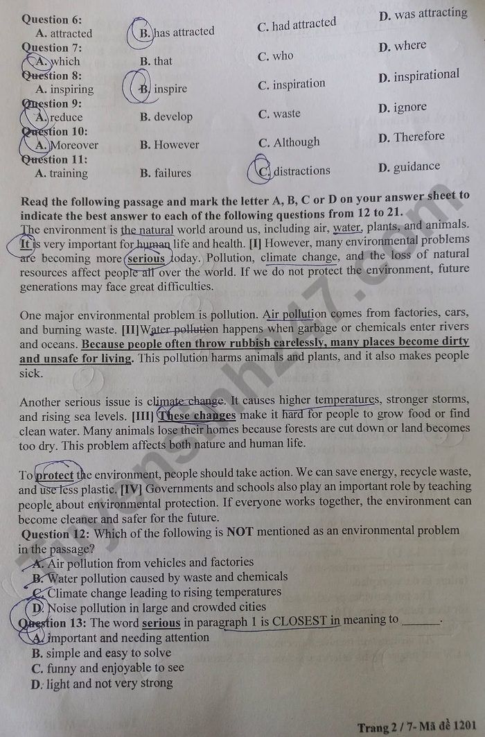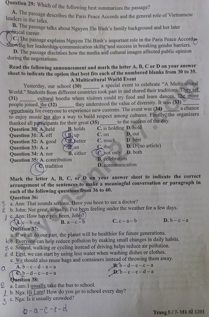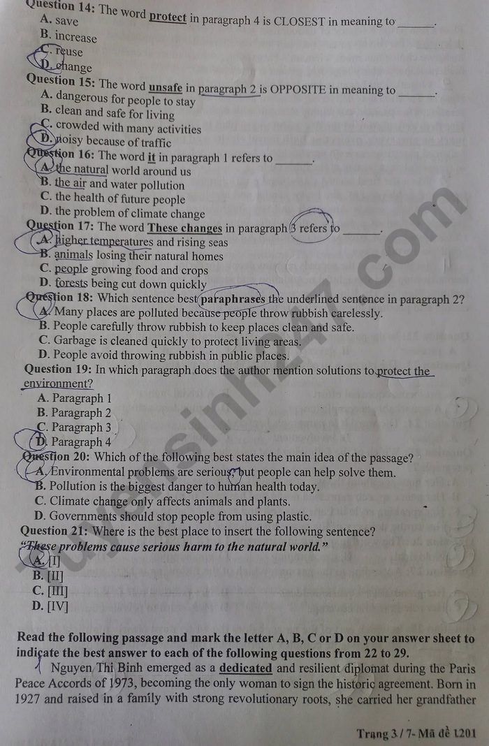 Lưu ý: Lời giải trong đề là bài làm của học sinh, có thể không chính xác