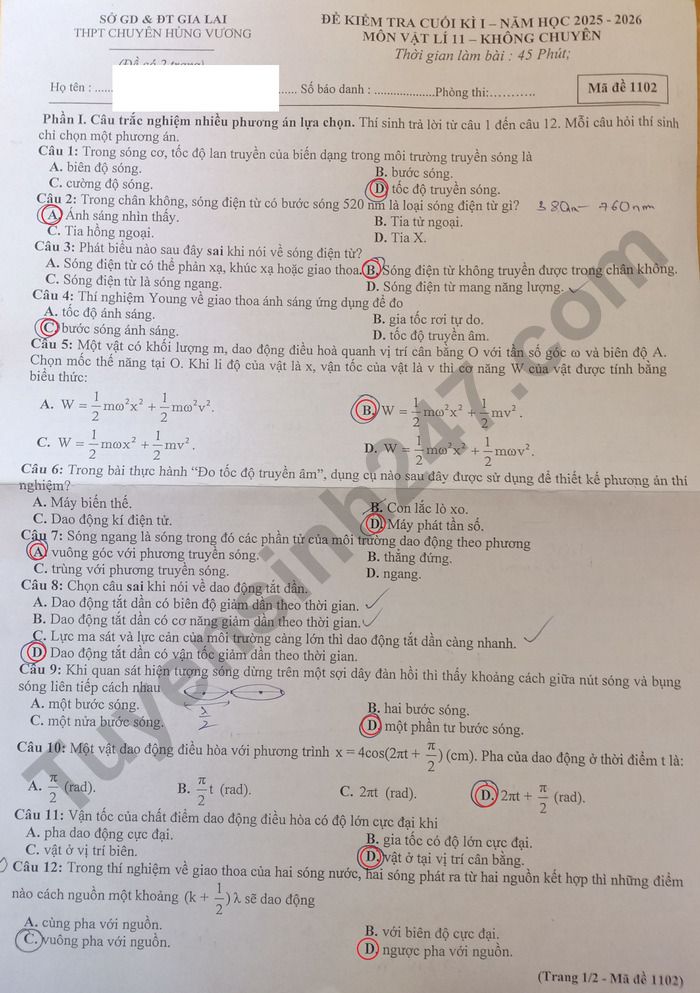 Đề thi kì 1 năm 2025 THPT Chuyên Hùng Vương - lớp 11 môn Lý