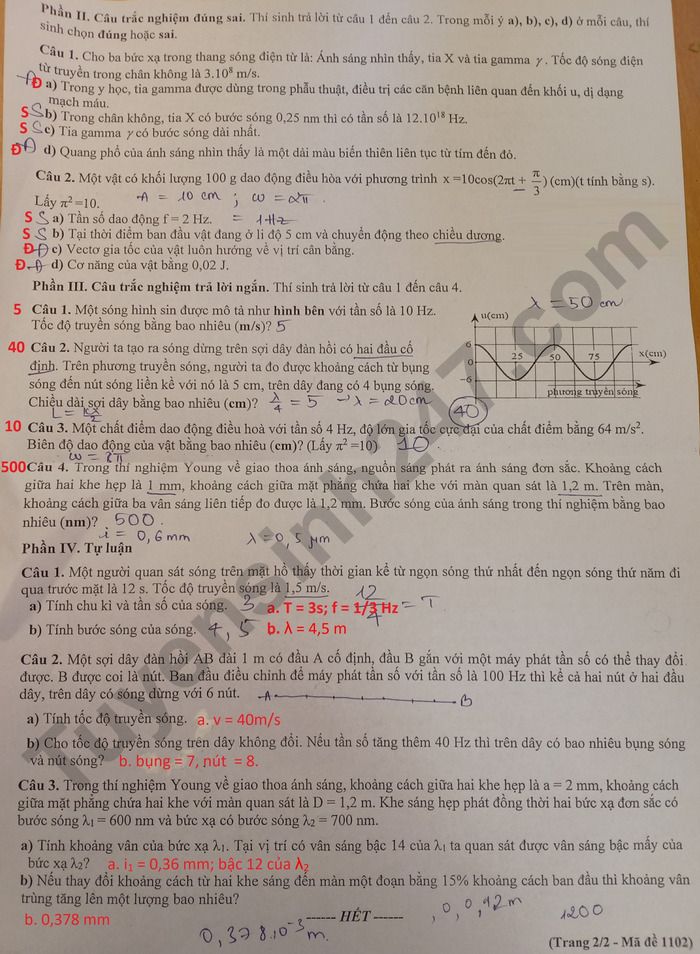Câu 3. Trong thí nghiệm Young về giao thoa ánh sáng, khoảng cách giữa hai khe hẹp là a = 2 mm, khoảng cách giữa mặt phẳng chứa hai khe với màn quan sát là D = 1,2 m. Khe sáng hẹp phát đồng thời hai bức xạ đơn sắc có bước sóng 11 = 600 nm và bức xạ có bước sóng kz = 700 nm.